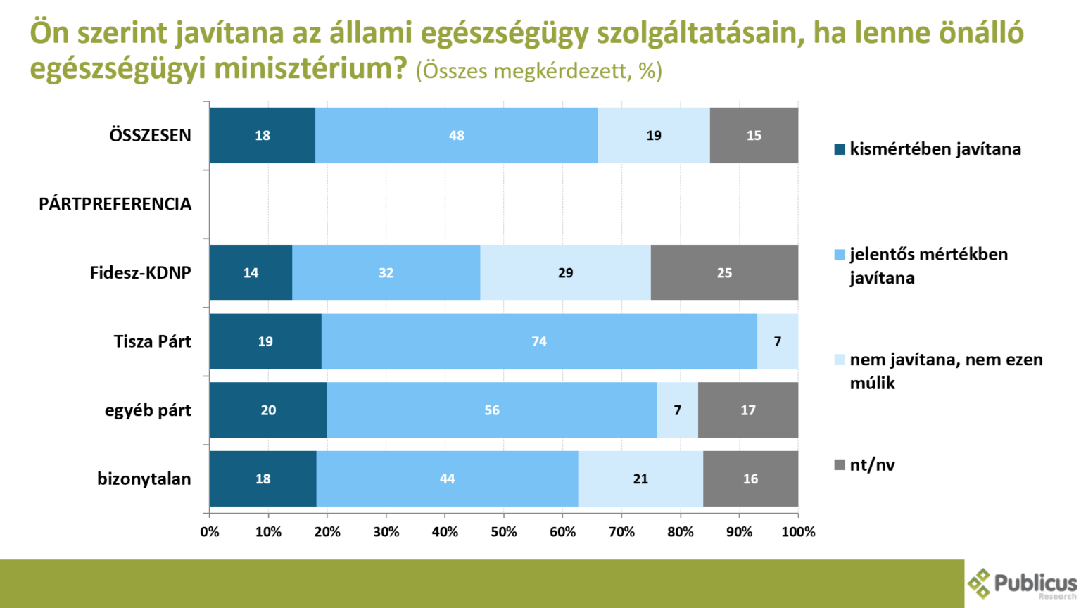 Minden második válaszadó szerint jelentős mértékben, közel minden ötödik megkérdezett szerint pedig kis mértékben javítana az állami egészségügy szolgáltatásain, ha lenne önálló egészségügyi minisztérium.